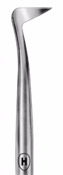 Karl Hammacher kök elevatörü. Paslanmaz çelik, otoklav sterilizasyonuna uygundur.