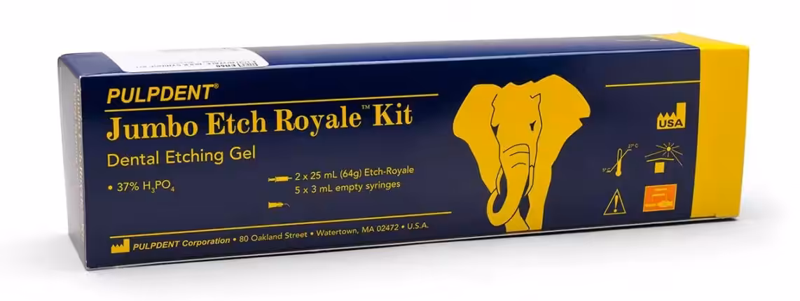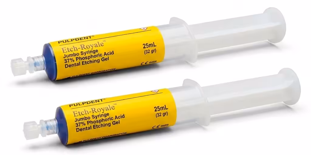 Ürün kataloğunu incelePulpdent Jumbo Etch-Royale™ Kit – %37 Asit Jel (2x25ml jumbo şırınga + 5 adet 3ml boş şırınga ve uygulama uçları)